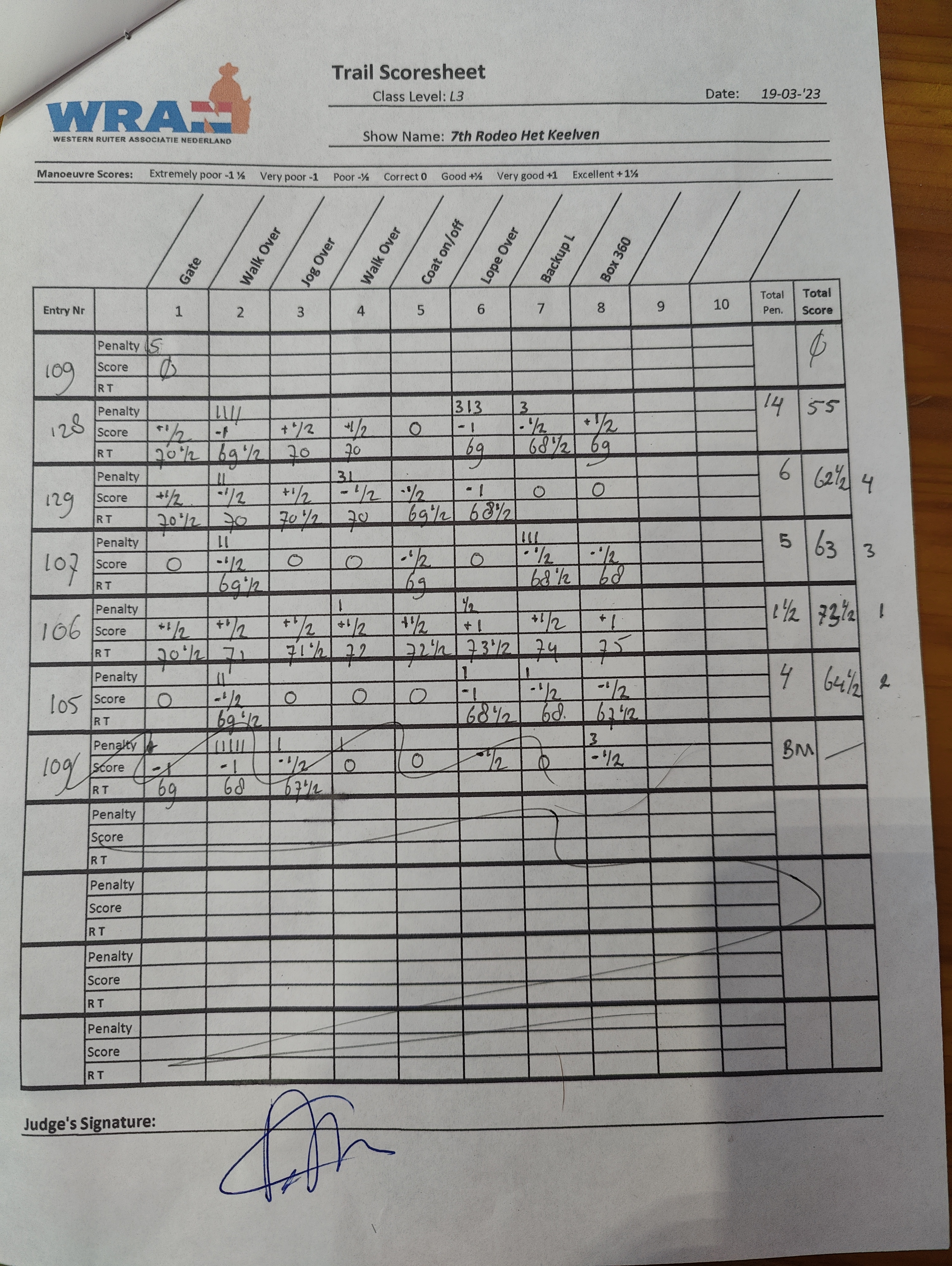 | 2 | 105 | Borya van de Noordpolder | Stikvoort Rome | 64.50 | Valid place |